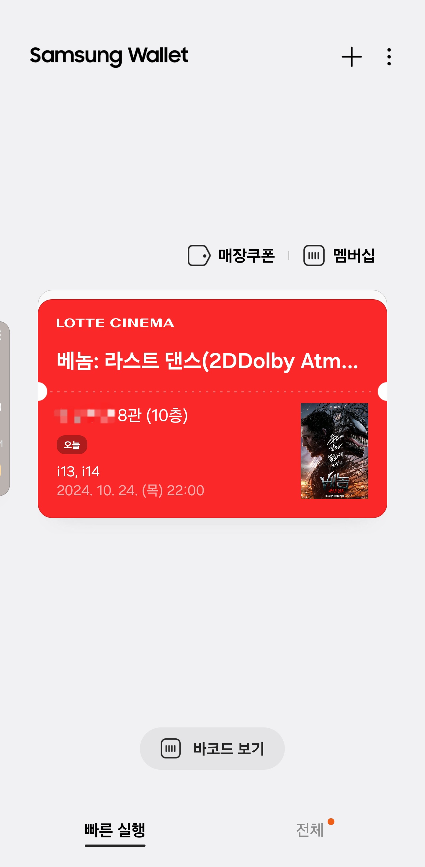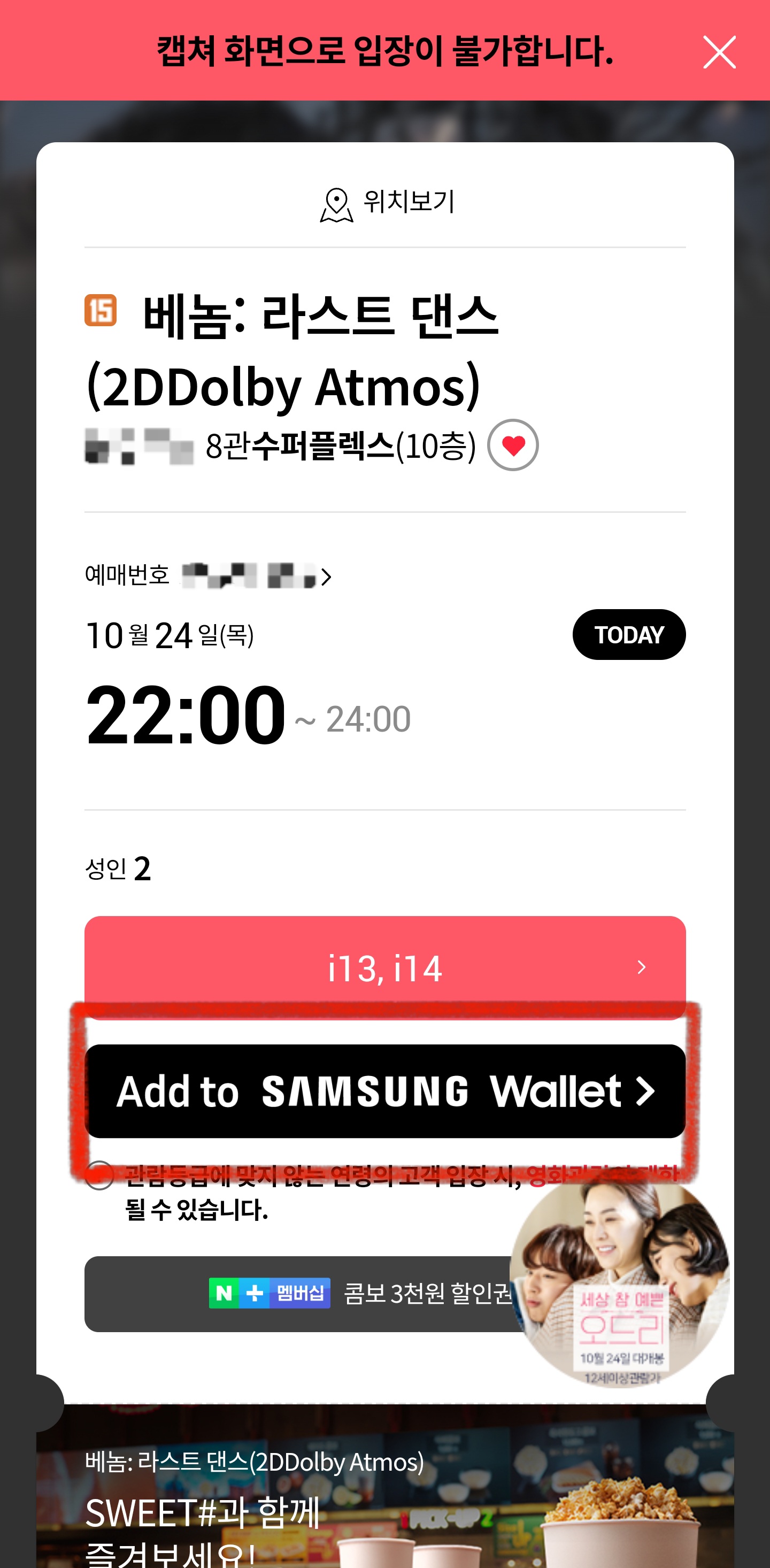 삼성월렛(삼성페이)에 영화티켓을 추가해서 간편하게 꺼내 볼 수 있다는걸 아셨나요?