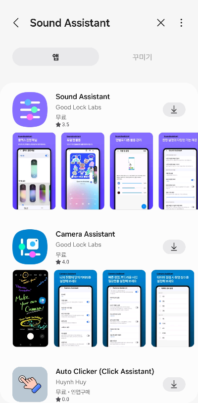 갤럭시 스토어에서 Sound Assistant 를 검색합니다.